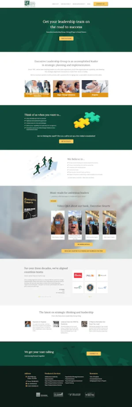 Executive Leadership Group approached Pronto Support to help them simplify their homepage by adding new graphics and reimagining their content blocks.